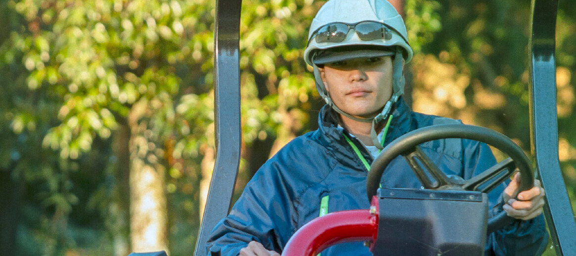 この仕事で大事なのは機材を壊さないよう注意することですが、仕事を覚えるにつれ、扱う機械も増えていきます。最初は小さな芝刈り機から始まり、段々と大きな機械を使うようになるのですが、色々な機械を操作するのは楽しく、自分にできることが増えていくのは嬉しいものです。