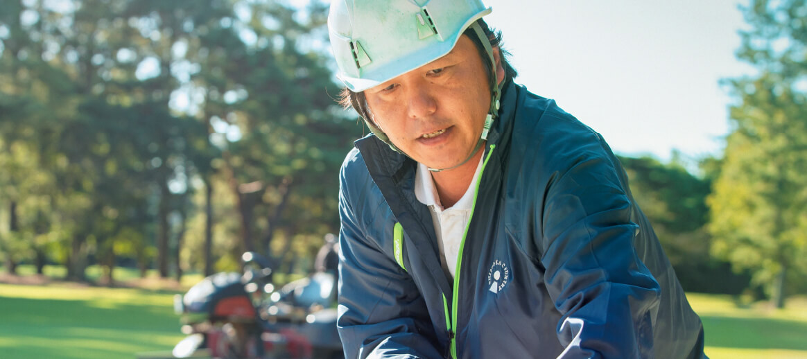 芝生という植物をどうすればいい状態に保てるか、春夏秋冬、季節の変化に応じて作り込んでいく作業は奥が深く、一朝一夕ではできないからこそ、やりがいがあります。