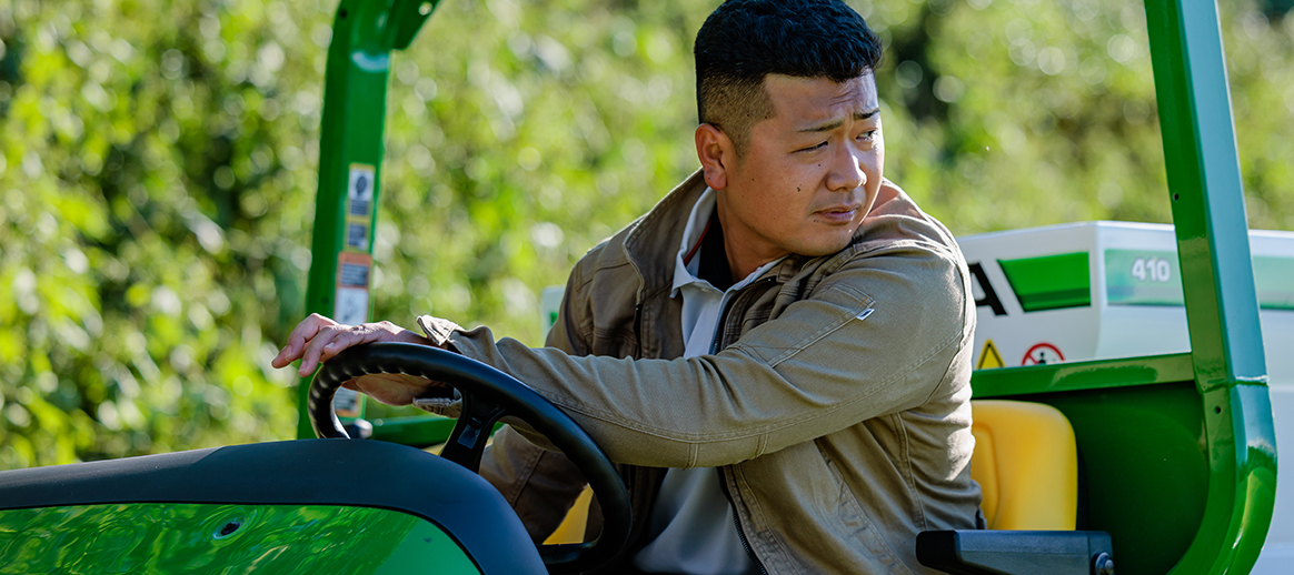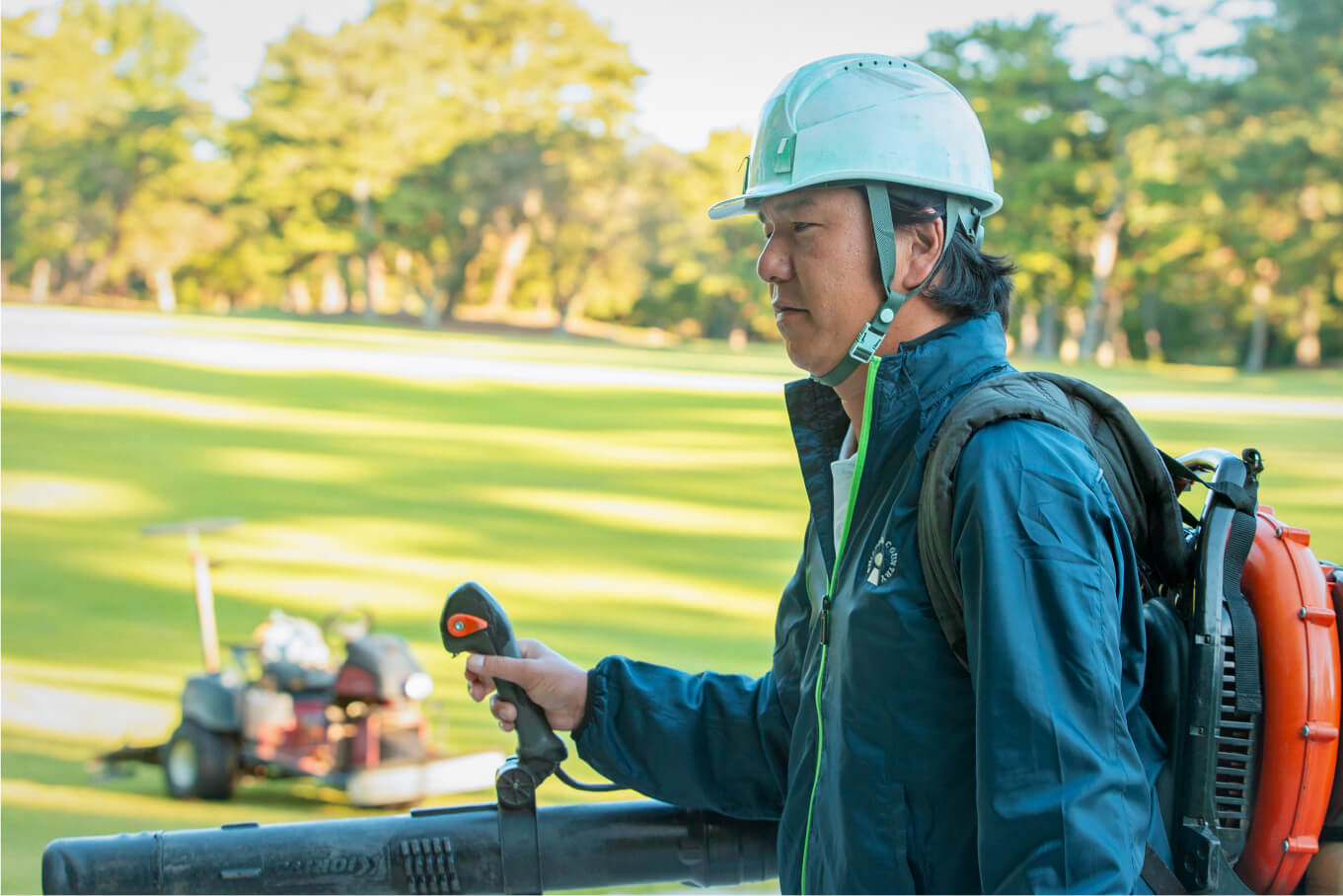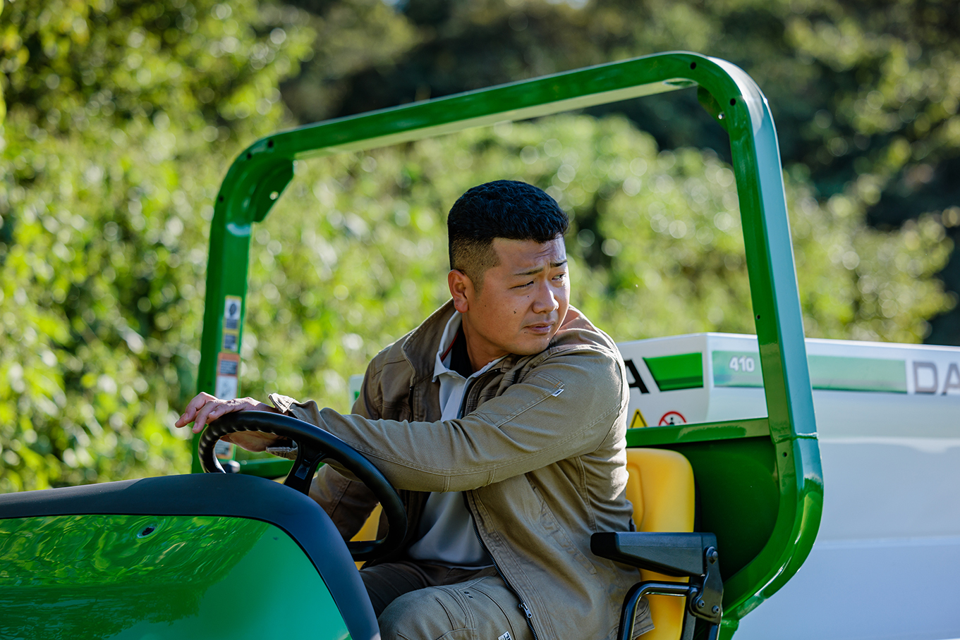 父親が土木業をやっていたので、小さい頃から屋外で行う仕事に憧れがありました。高校3年の職場体験でゴルフ場を見学した時、広大な敷地の綺麗な芝地の緑を見て、凄い所だなと感動したんです。青空の下で、ゴルフ場の整備された芝地を管理するなんて、滅多にできる仕事ではありません。これはかっこいい、ここしかないと入社を決めました。