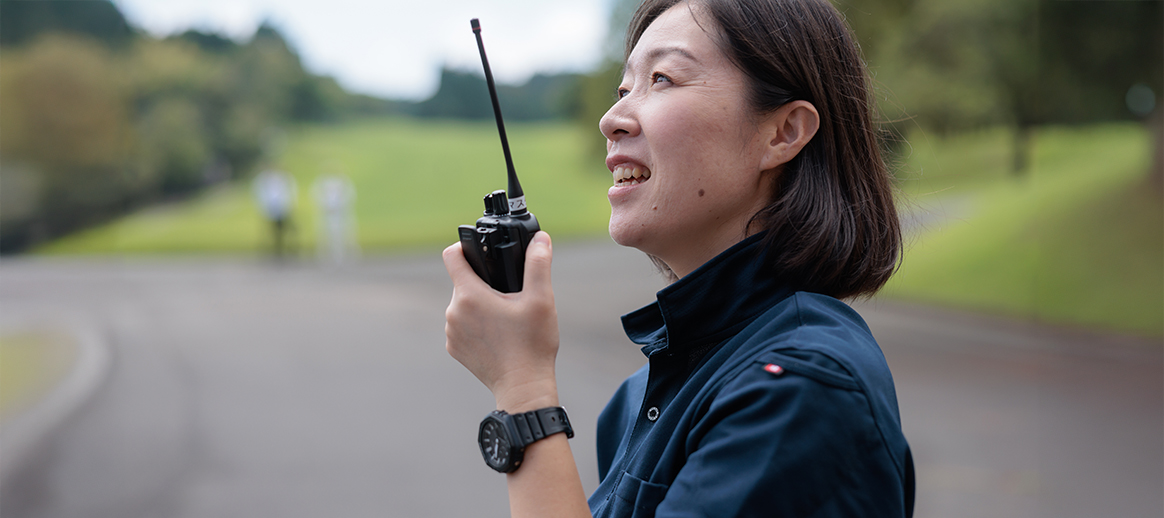 お客様が気持ちよくプレーできるように、全力で走ってサポートするのが私のスタイル。お客様に色々なアドバイスとお手伝いをしながら一緒に18ホールを回り、喜んでいただけた時はキャディ冥利に尽きます。