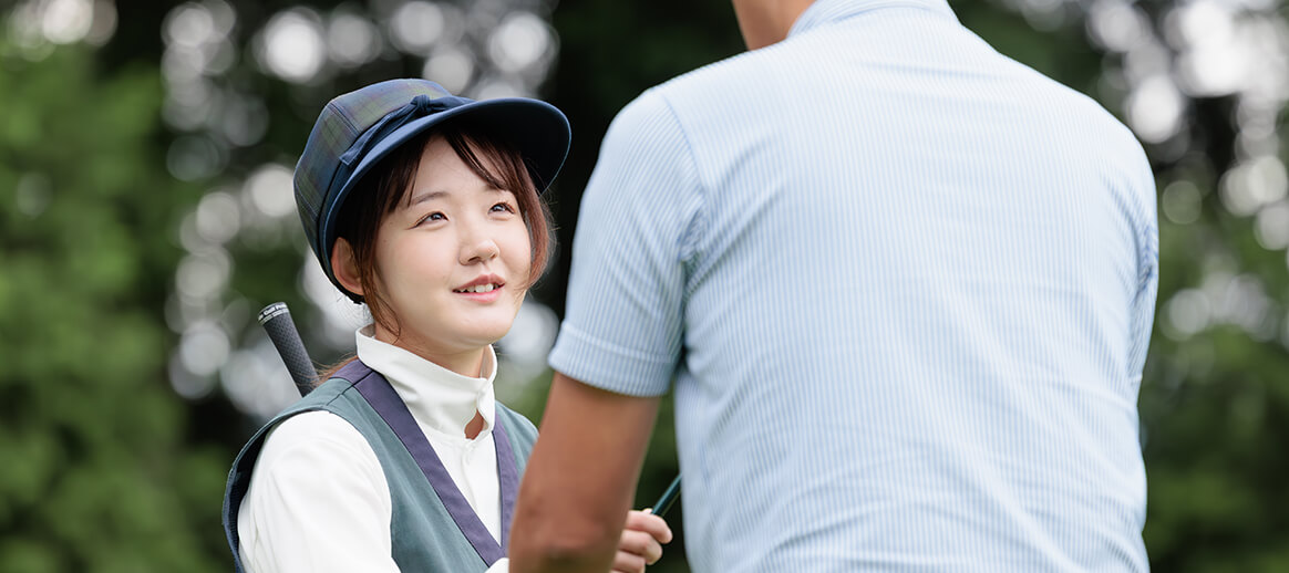 キャディは、お客様がゴルフを安全に楽しくプレーできるようにサポートする仕事。初対面のお客様も多く、最初の頃は緊張して上手く話せませんでしたが、徐々に慣れてきた今では、お客様との会話がとても楽しい毎日です。