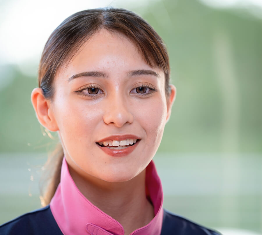 県内の大学を卒業後、接客業に就こうとホテルも考えましたが、最終的に選んだのがゴルフ場でした。それまでテレビでしか見たことのなかったゴルフ場は思っていた以上に広く、アットホームな雰囲気に包まれおり、何よりも働く皆さんの人柄が心にグッと来ました。こんなに笑顔で、気持ちの良い対応をされる方々と一緒に仕事ができたらいいなと思い、入社を決めました。