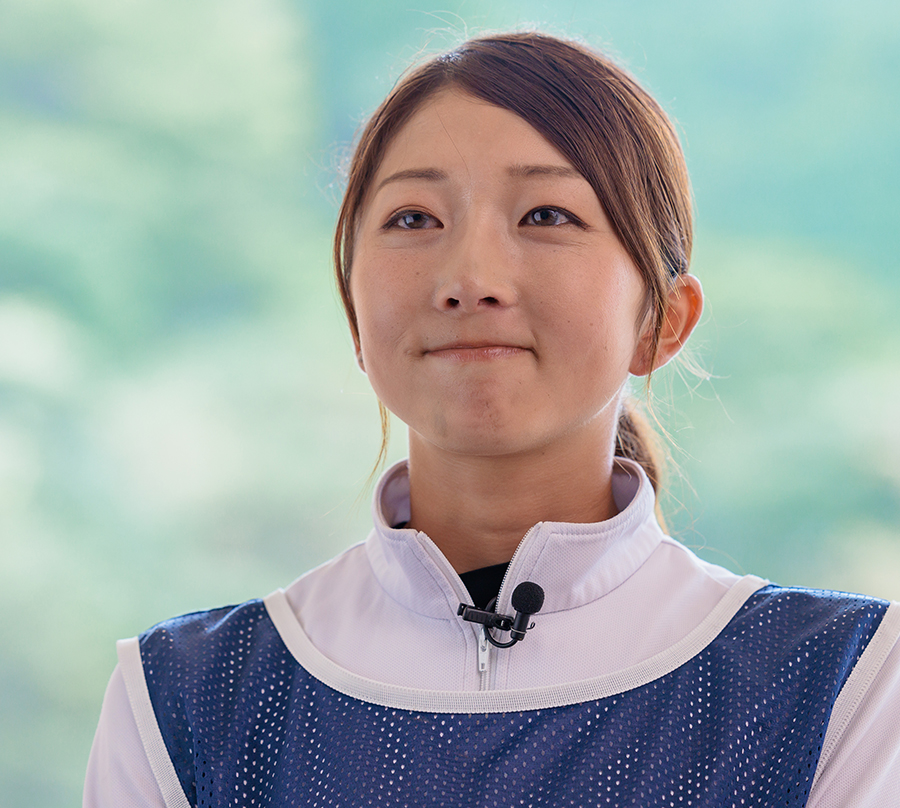 ゴルフの事は全く知らずに、この世界に入りました。最初は2人の先輩に指導してもらい、他のキャディさんの良い部分を吸収し、自分なりに見直しながらやってきました。入社と同時にゴルフを始め、休日はキャディ仲間とゴルフを楽しみ、お客様に的確なアドバイスをするスキルアップにもつながっています。