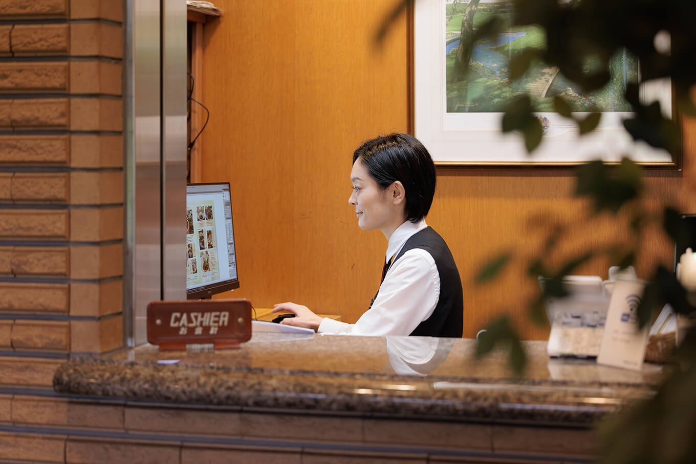 フロントの仕事は、朝のチェックインとお帰りの際の精算が主な仕事です。